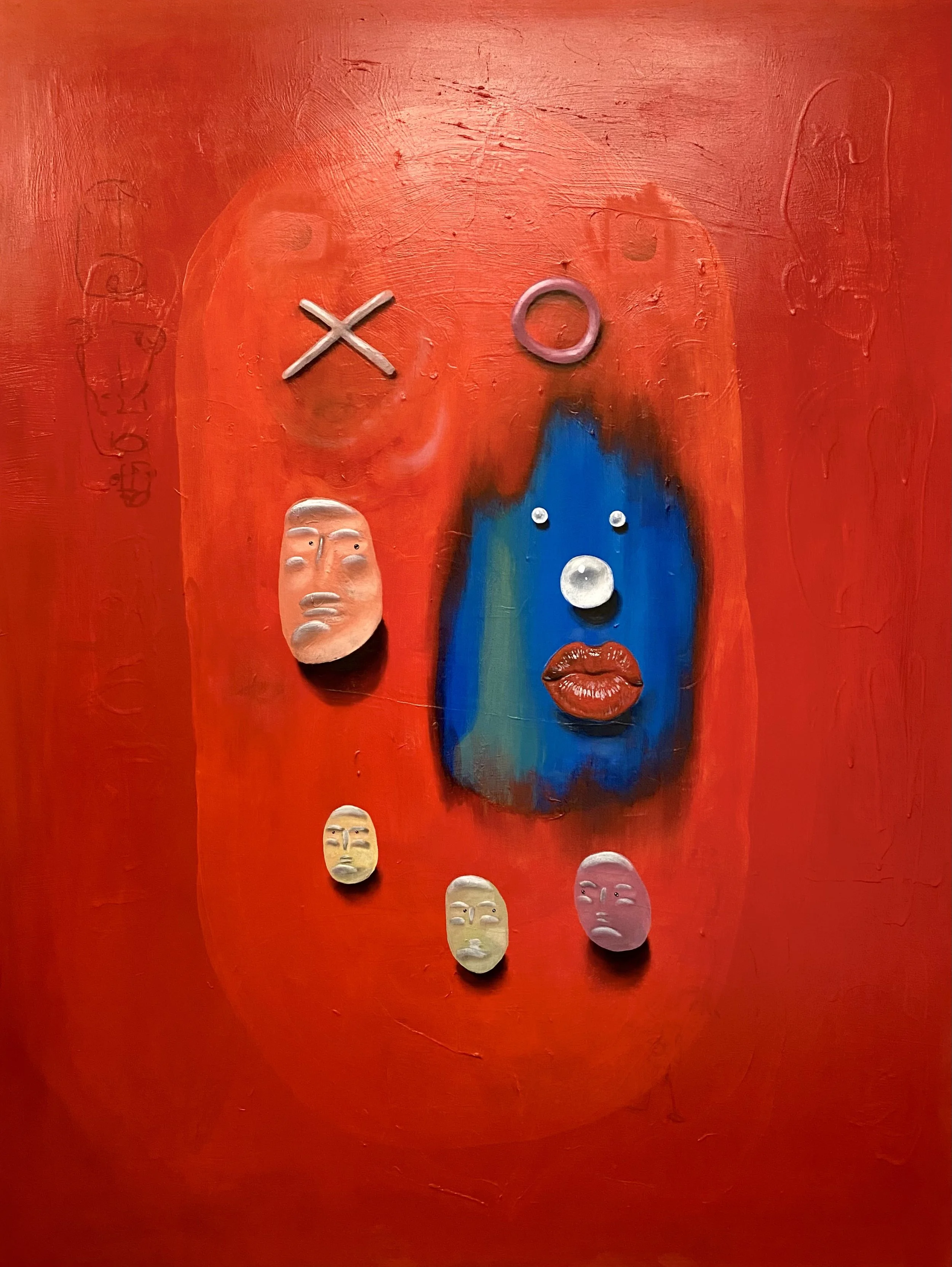 ONE OF ME, 2021, Oil and mixed media on framed glass, 60" x 48" – Sold